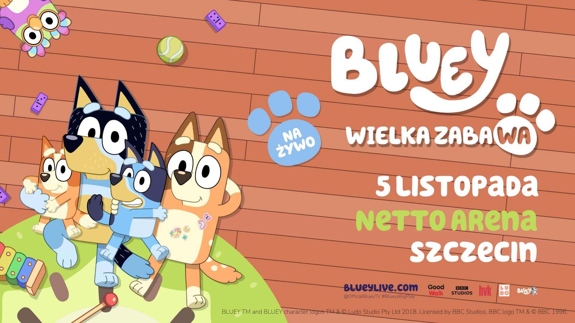 Powstały w Australii, animowany serial telewizyjny, od swojego debiutu w 2018 roku cieszy się ogromną popularnością. Opowiada o Bluey, ukochanej i energicznej psiej dziewczynce rasy Blue Heeler, która mieszka z mamą, tatą oraz swoją młodszą siostrą, Bingo. Bluey ze swoją niespożytą energią, w nieprzewidywalny i zabawny sposób, wciąga rodzinę i całe sąsiedztwo do swojego świata pełnego radości i zabawy. Wielokrotnie nagradzany, serial stał się globalnym fenomenem wśród rodziców i dzieci, przyciągając widzów z całego świata.